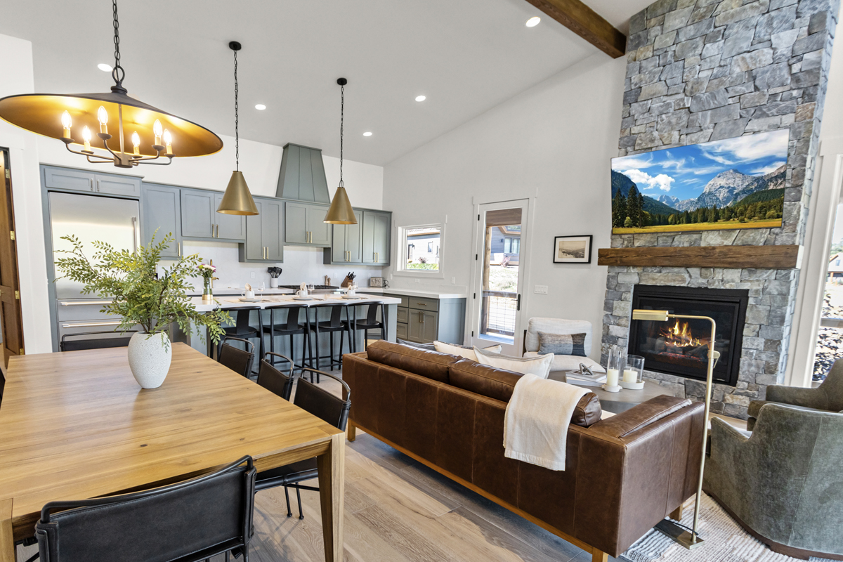 Home model known for beautiful views from the back. Comfortable and cozy as you enter from the front and an entertainer’s dream space as you step on to the back living area featuring enough space for outdoor dining and outdoor living. Perfect for larger families – both levels offer family room/gathering areas. Each of the 4 bedrooms offers a private bathroom. This home model is placed on strategic lots with the perfect elevation to provide the most beautiful Montana views and more privacy.